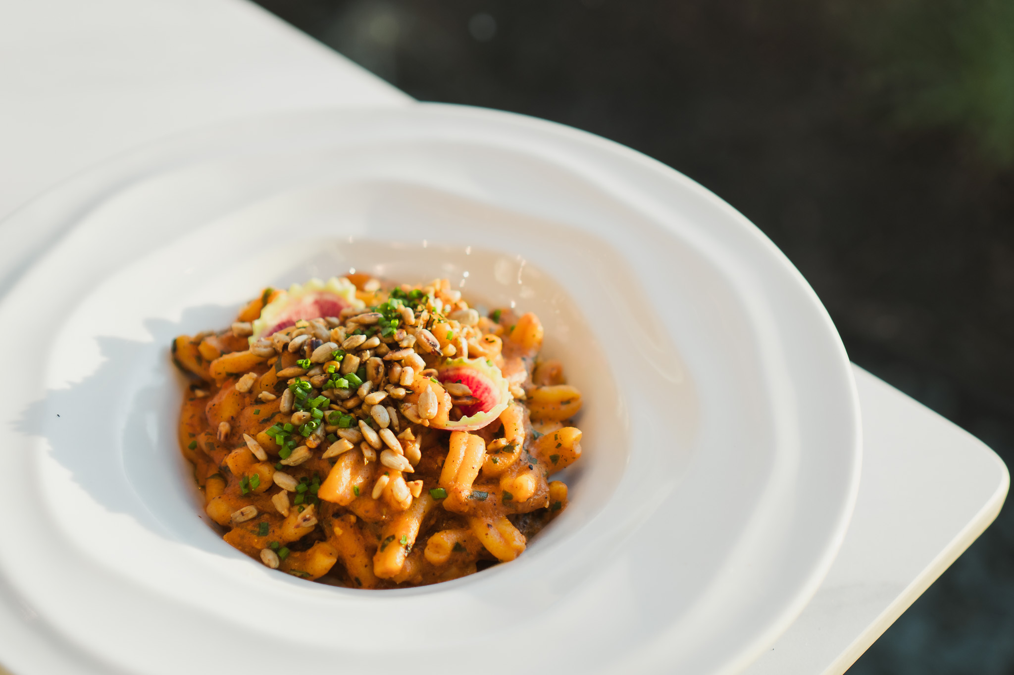 caserecce pasta, sun dried tomoato, rosemary, sunflower seed